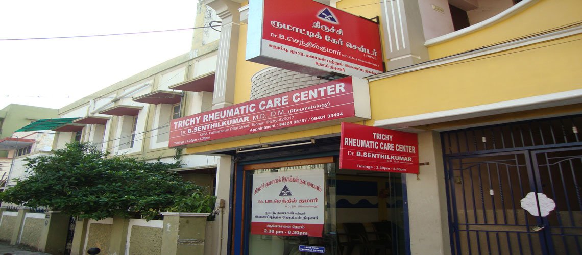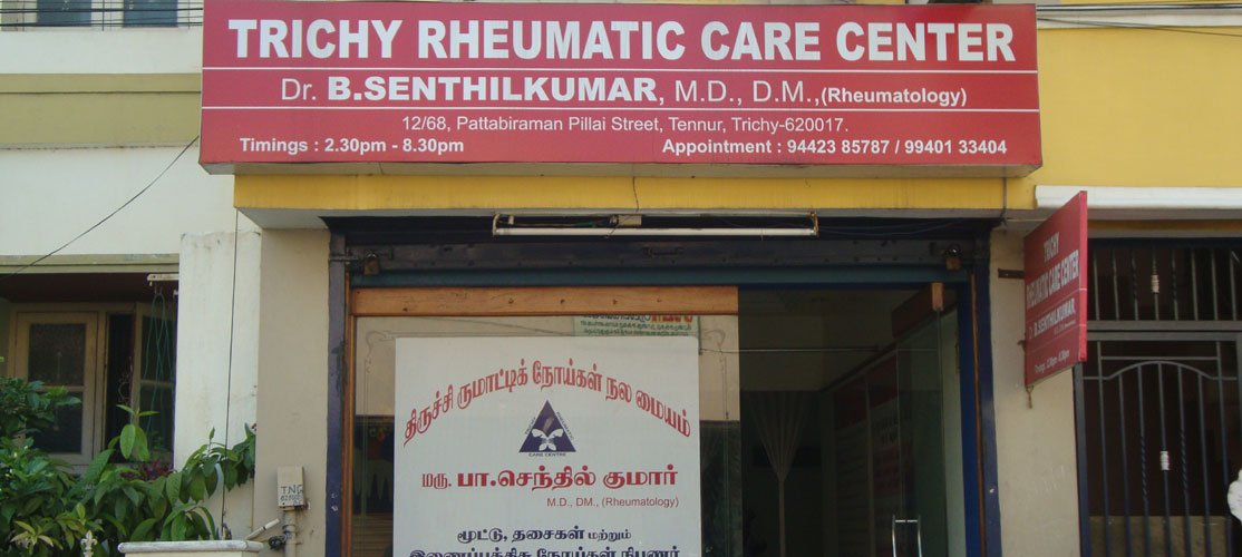 Trichy Rheumatic Care Centre Was founded by Dr. B. SENTHIL KUMAR M.D, D.M., (RHEUMATOLOGY), in june 2014. It is the first centre in and around Trichy district exclusive for the Management of Rheumatic Diseases. Dr. B SENTHIL KUMAR hails from Tiruchirappali district, Tamilnadu, India. He did his MBBS (1993 batch)and MD (General Medicine) from Tanjore Medical College and DM (Rheumatolgy) from Madras Medical College. His Field of interest is lupus and vascuilitis.He is visiting Consultant to Kauvery Hospital ,Sundaram Hospital, Atlas Hospital, Frontline Hospital and KVS Hospital Etc.,